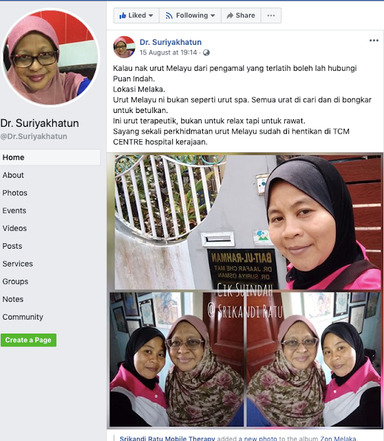 lepas baca status Dr Suriya pasal ni terus wassap. Memang lama nak urut badan . lepas dengar lokasi Melaka laju je ..
